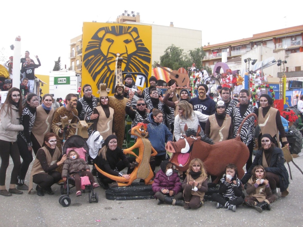 Volíem representar un moment clau de la famosa pel·lícula a la carrossa i pel que fa a la comparsa vam intentar escollir tres animals representatius d’aquest film. Zebres i gaseles en format manada i tres grans girafes que s’elevaven per damunt de la resta a ritme de “yo quiero ser Rey León”.