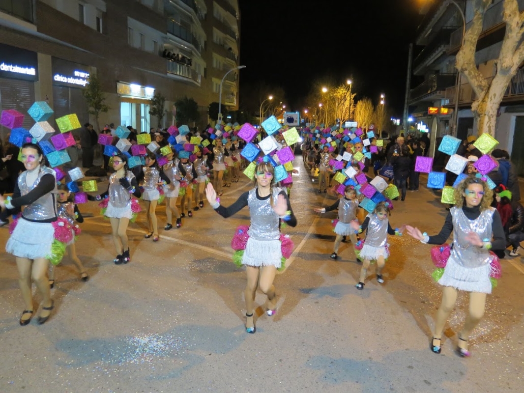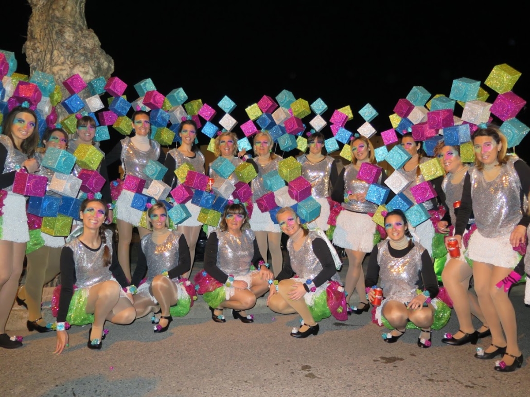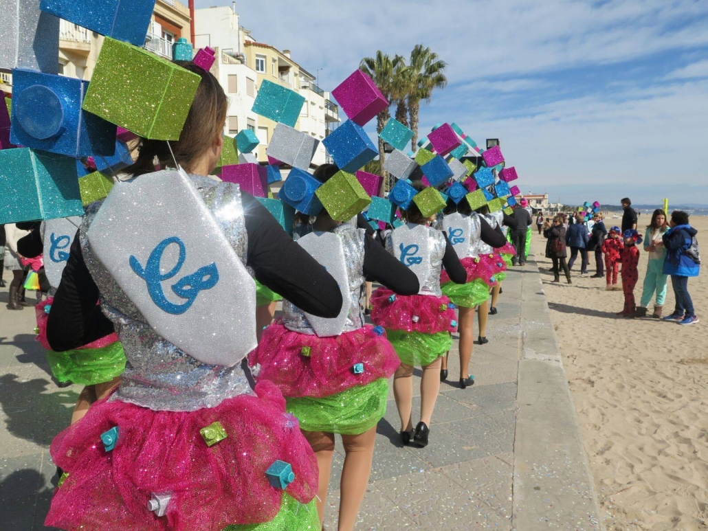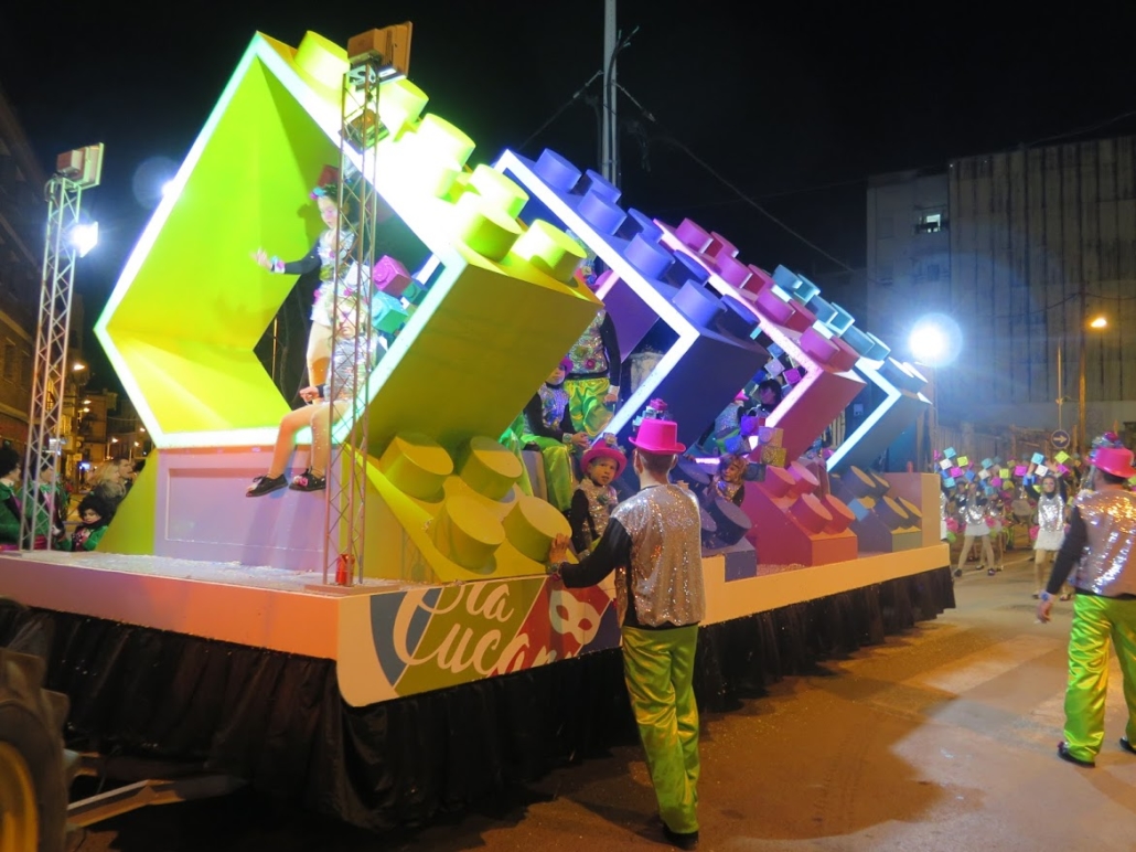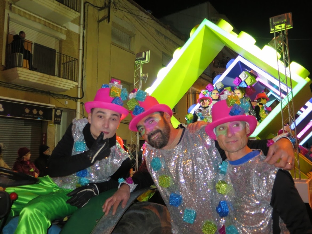 Carrossa i disfressa inspirades en les peces de Lego. Les noies lluïen una motxilla que en forma de ventall mostràven diverses peces Lego de porexpan amb purpurina de diferents colors. Portàven una faldilla curta amb “fleco” platejat pel davant i una part molt voluminosa al darrera amb tela de color verd i fúcsia, on s´hi van enganxar peces petita de Lego fetes amb goma eva.
